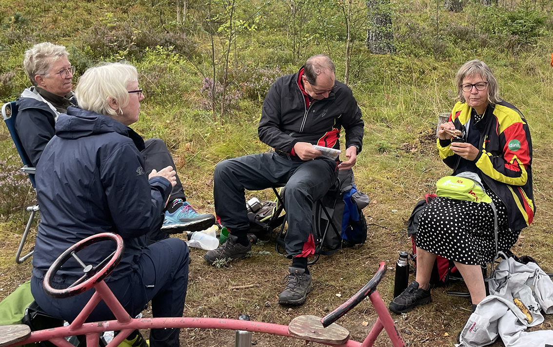 Lars Karlsson informerade om Hammarnäset och de militära verksamheter som varit där alltsedan man började bygga Karlsborgs fästning i början av 1800-talet. Det är ett militärt övningsområde, flack hedmark med gles tallskog och det finns hur mycket stigar som helst. Lars avslutade med en uppmaning: Håll ordning på stigarna annars hittar ni inte hem!